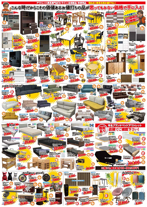- 店舗名: アウトレット家具専門店「B-ライン」